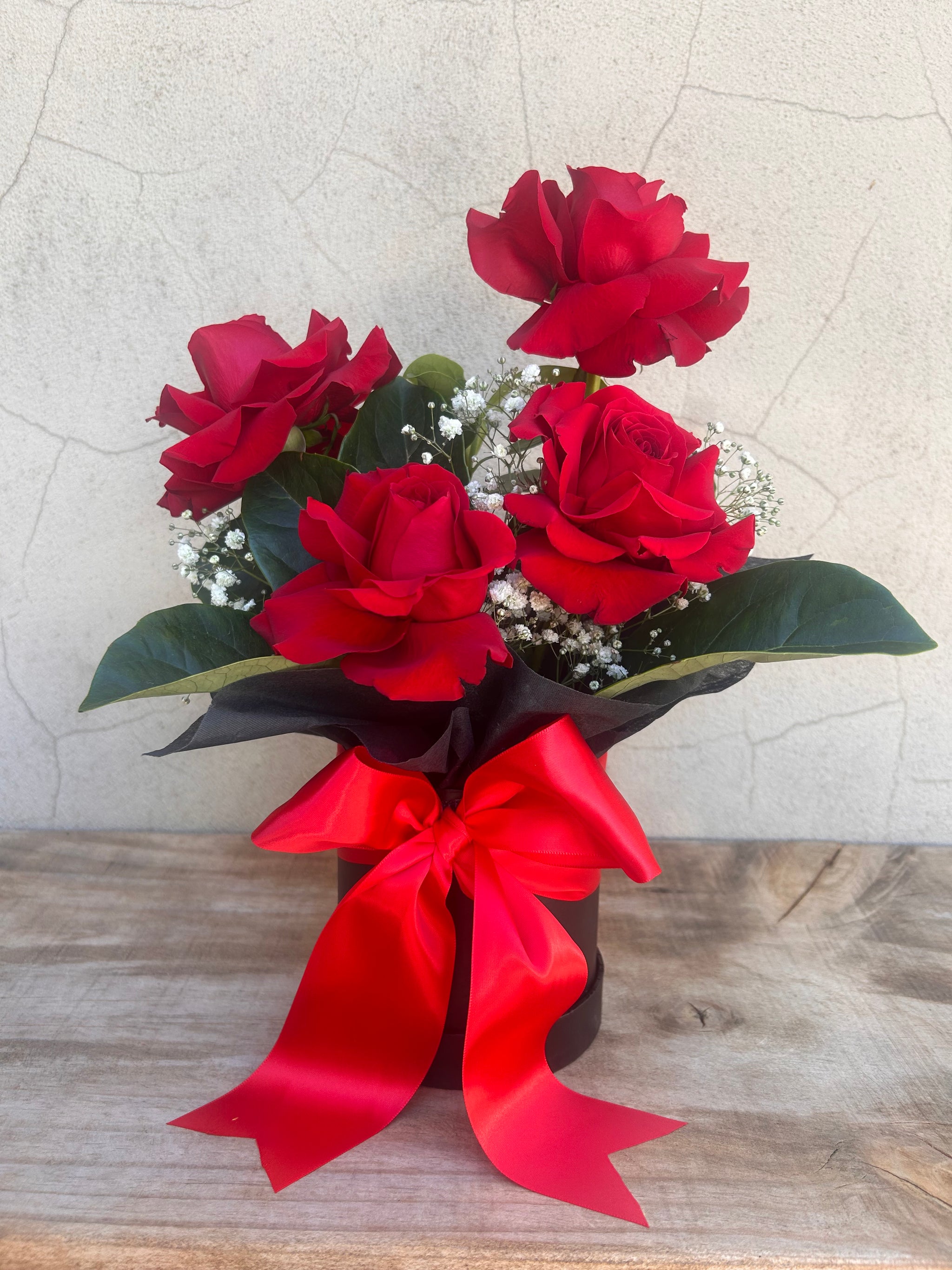 VIDA features four premium Ecuadorian red roses, arranged in our signature keepsake box which comes in classic white or chic black.
